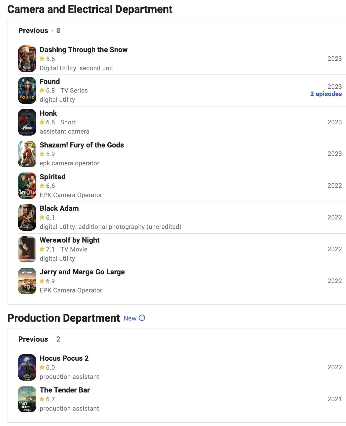 IMDB Film Credits